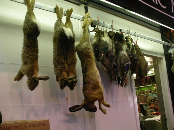 看到整排兔子掛在門口,就可以想像牛津這一帶多適合野兔生長,