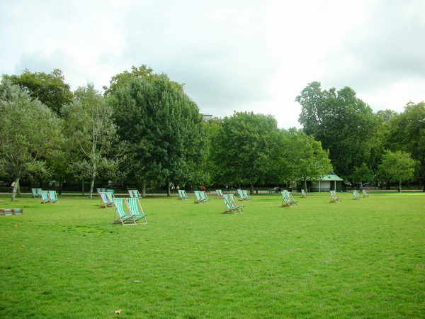 這樣的躺椅服務在公園裡到處都有,四小時兩英鎊,還挺划算的呢。