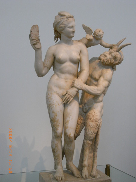 而這個雕像就是在說羊角獸偷看維納斯洗澡,還想調戲她,
